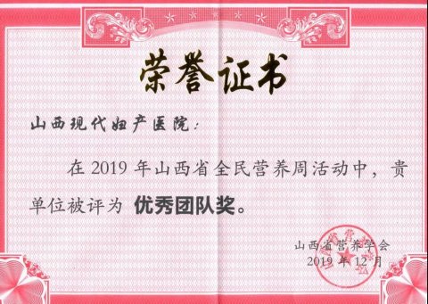 【喜訊】山西現(xiàn)代婦產(chǎn)醫(yī)院獲“2019年全民營(yíng)養(yǎng)周優(yōu)秀團(tuán)隊(duì)”榮譽(yù)稱號(hào)